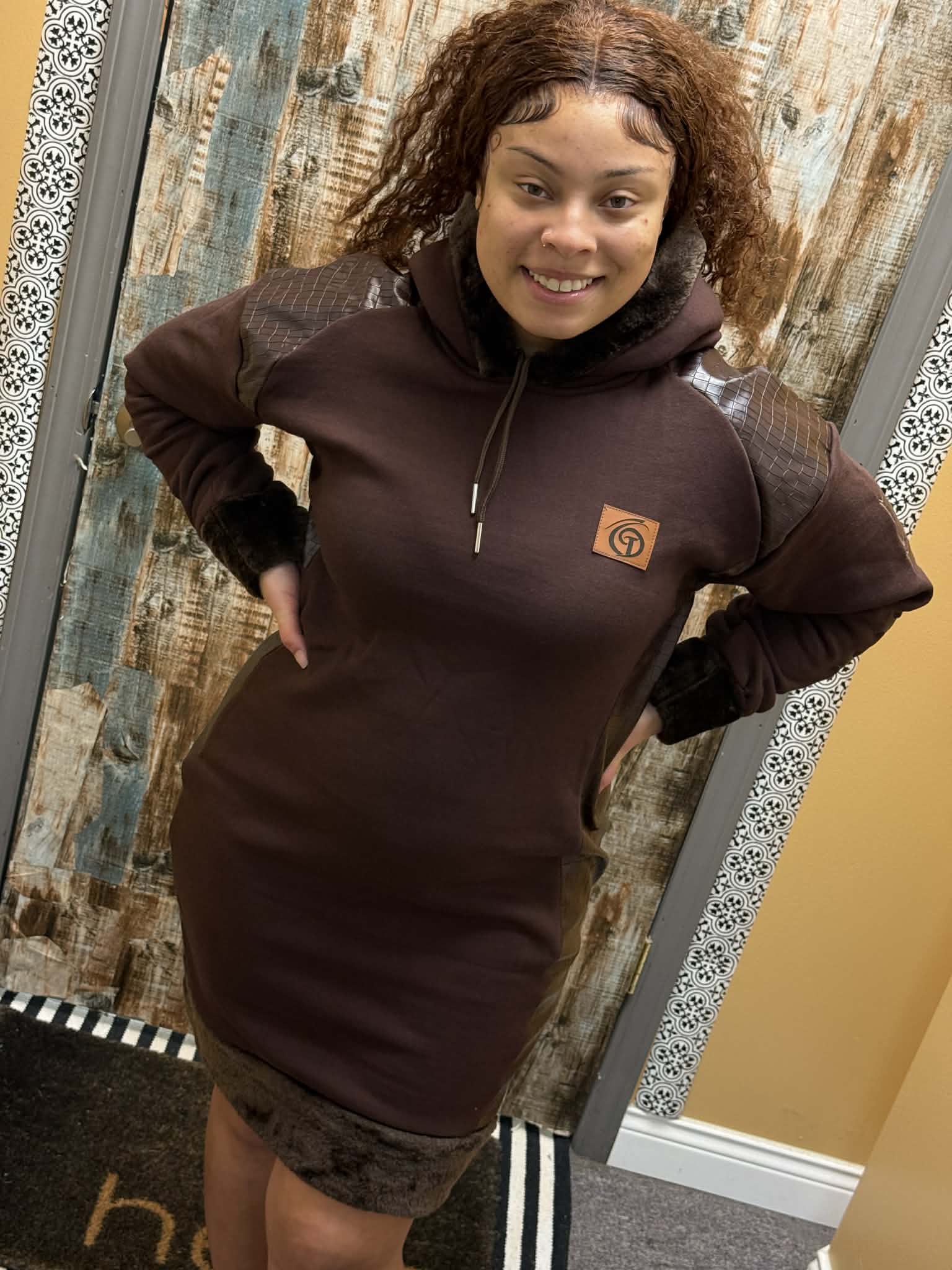 Brown with fur and leather